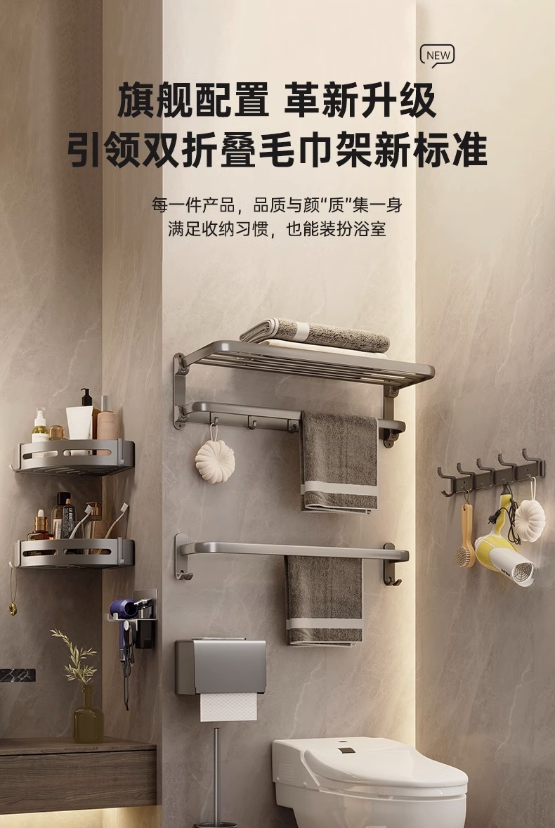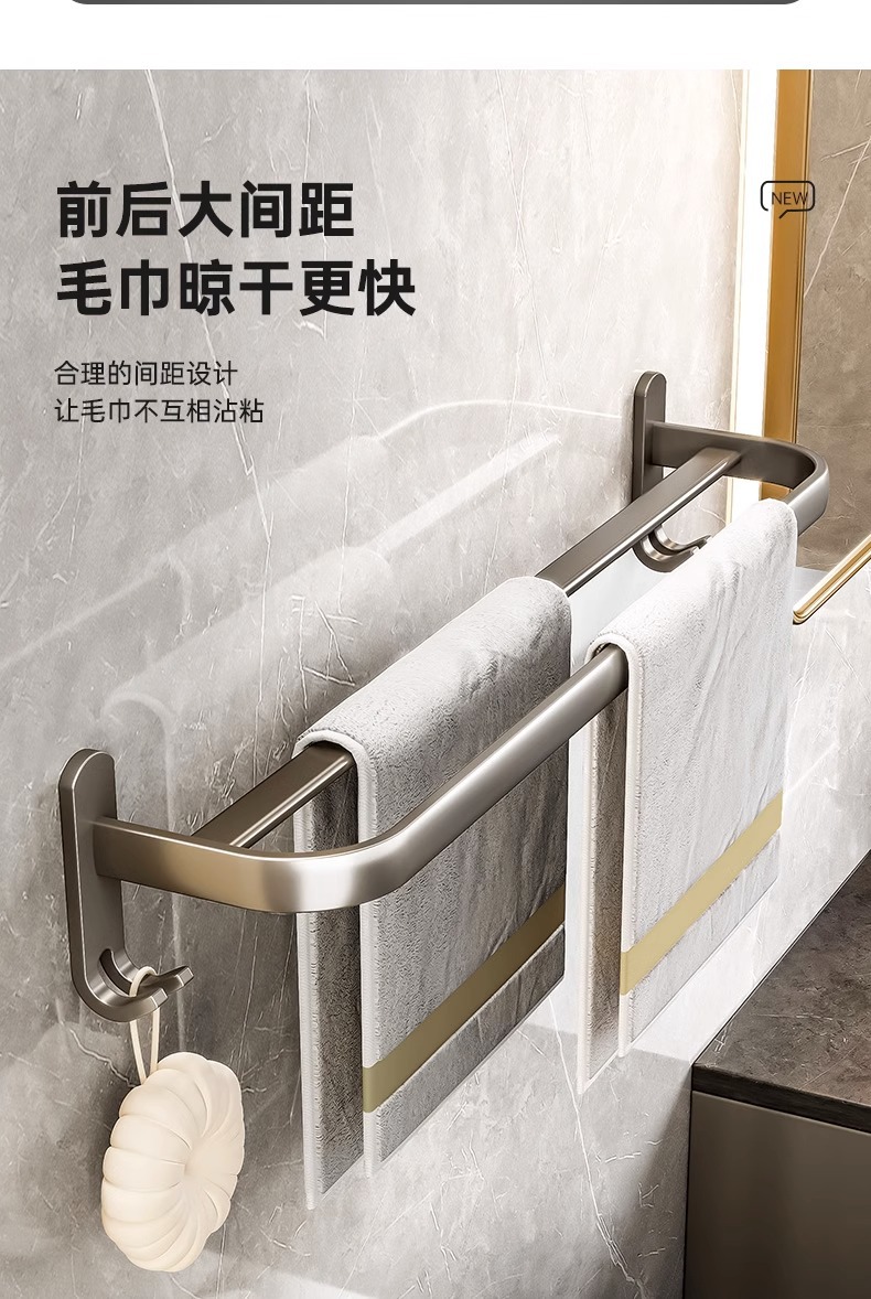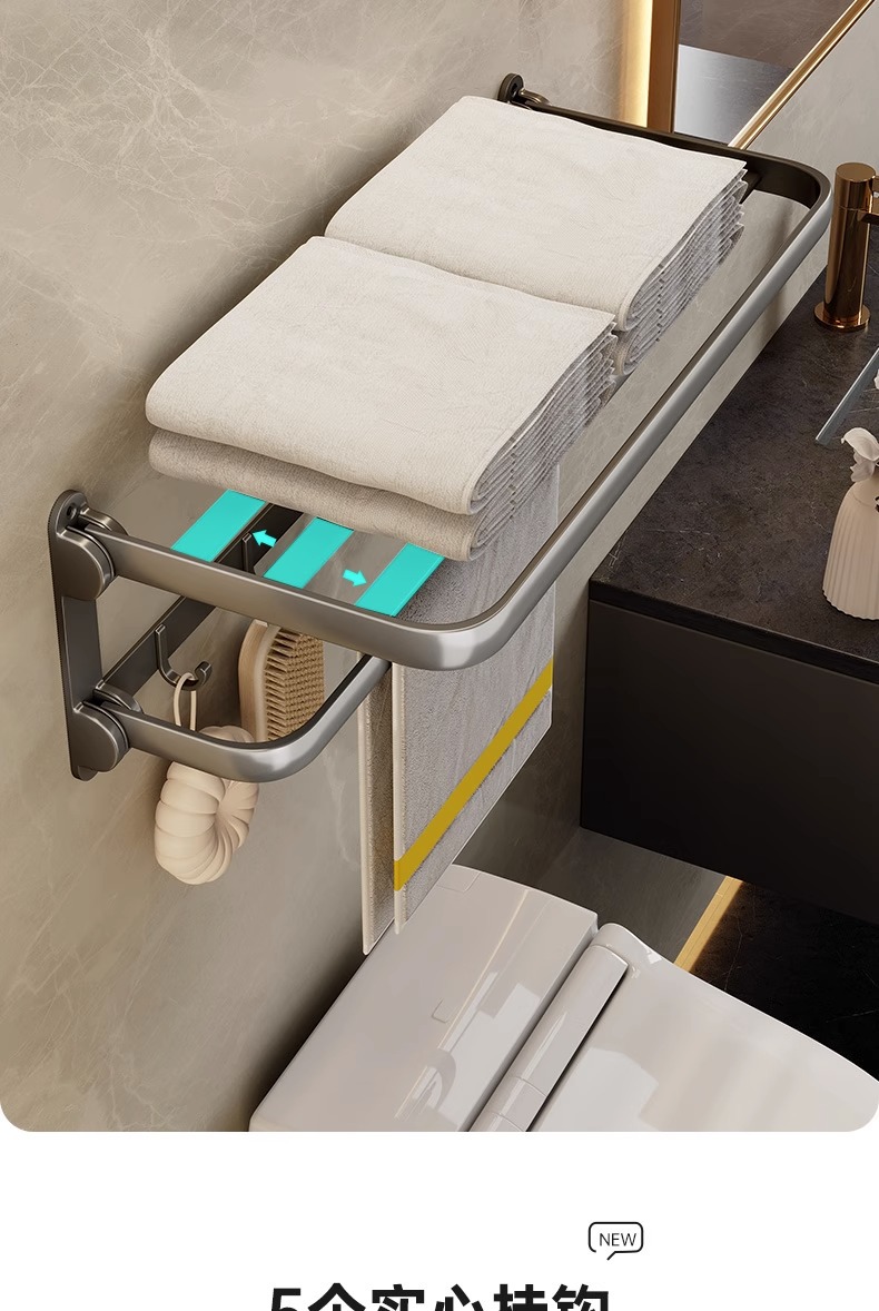 Gun Gray Towel Rack Hotel Bathroom Shelf Bathroom Perforation-Free Space Aluminum Light Luxury Bath Towel Shelf Wall Hanging