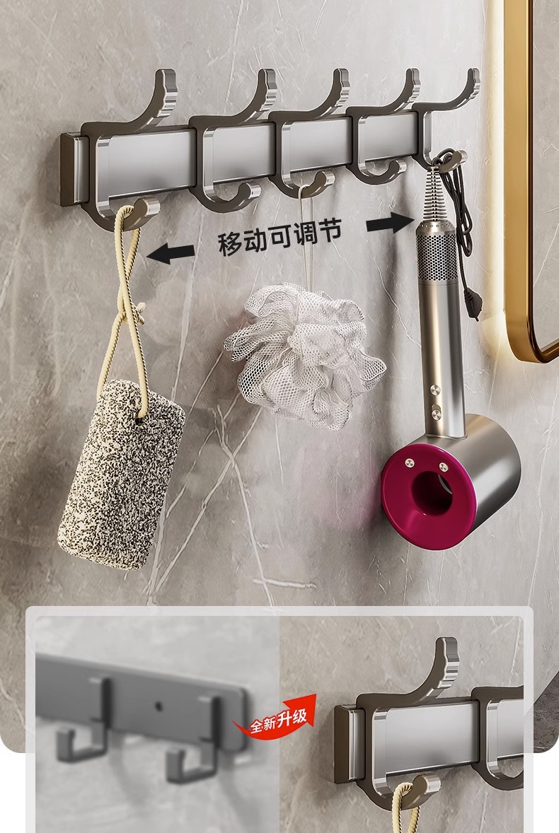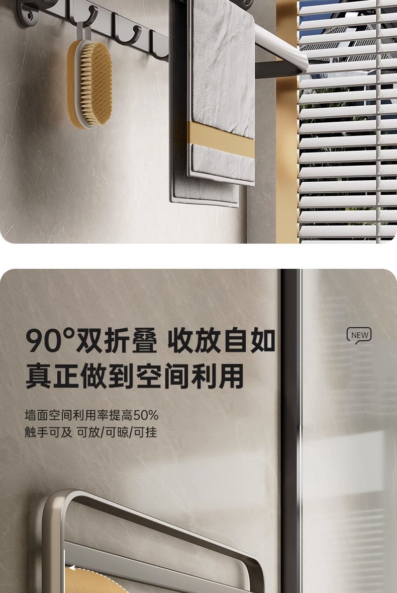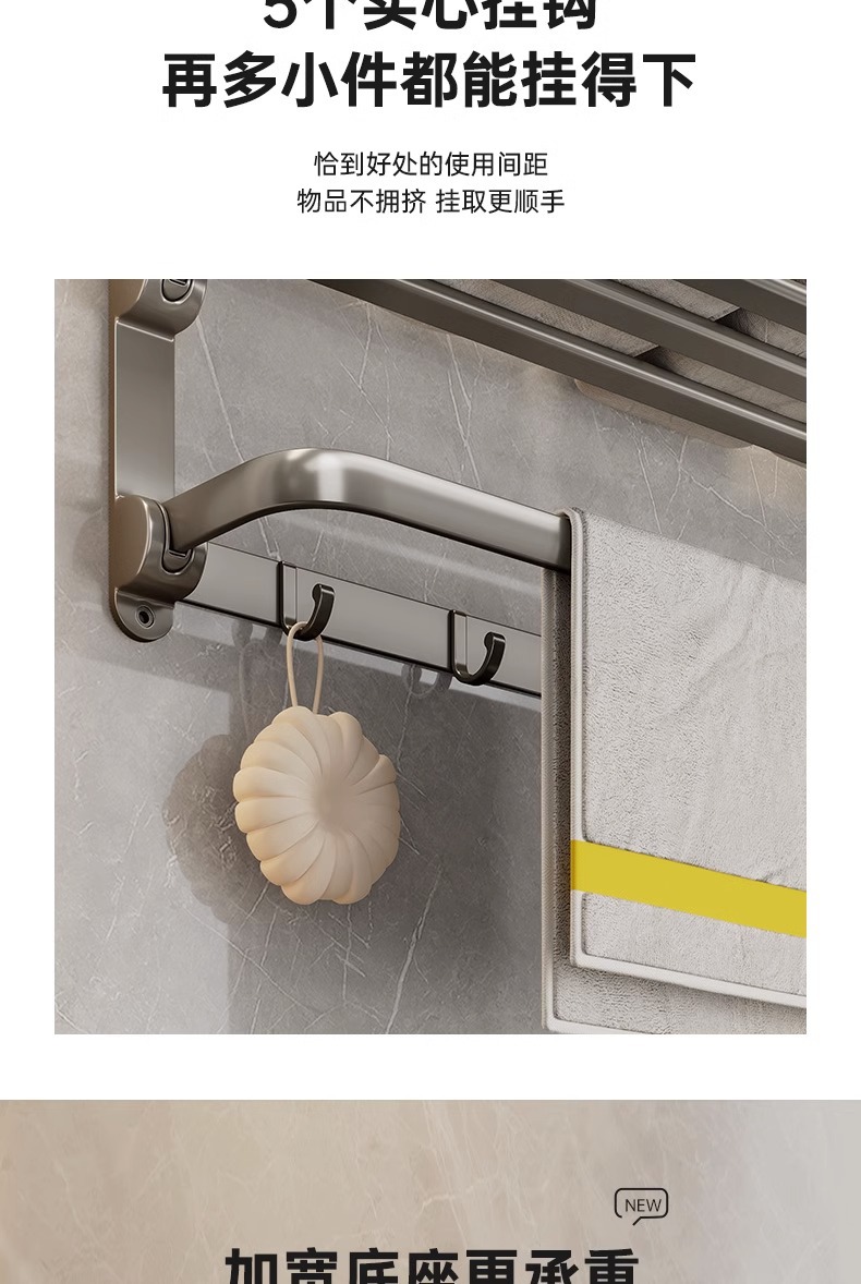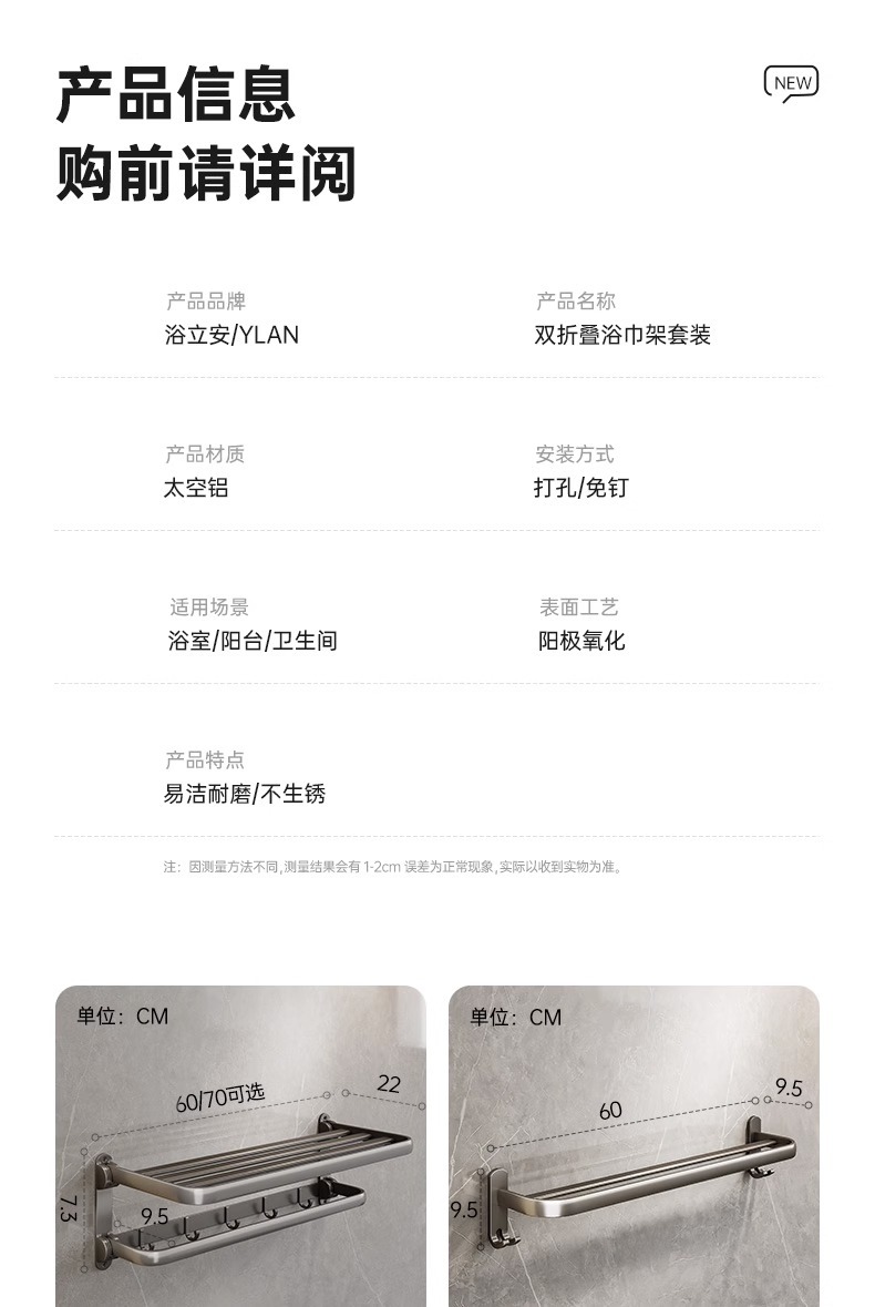 Gun Gray Towel Rack Hotel Bathroom Shelf Bathroom Perforation-Free Space Aluminum Light Luxury Bath Towel Shelf Wall Hanging
